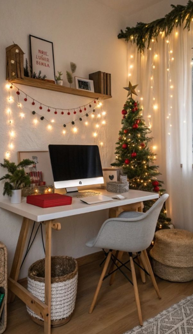 Nada diz “estou pronto para o Natal” como um espaço cozy. Pensa em luzes quentinhas (mais amareladas), um cheirinho de canela no ar, decorações, músicas de natal a tocar no fundo, podes imprimir umas fotos temáticas e escrever umas frases super natalícias 🥰 Pequenos detalhes fazem a diferença e ajudam a entrar no espírito 🎄